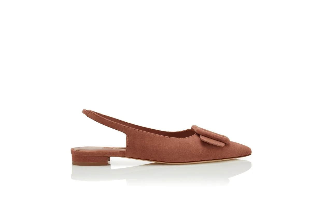 Brown Suede Buckle Detail Slingback Flat Pumps
