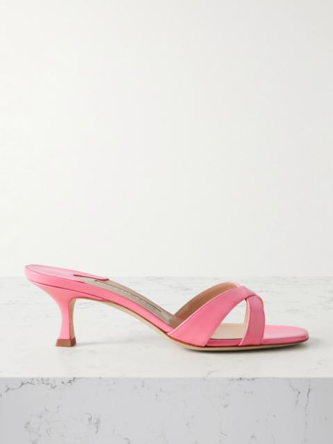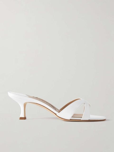 Manolo Blahnik describes sketching his heels as a type of meditation and typically creates the mini artworks freehand using sable brushes and watercolor inks. Made in Italy from black patent-leather, these 'Callamu' mules are set on a kitten heel. Contrast the glossiness of the uppers with a matte pedicure in your favorite color. Size & Fit - Fits small to size, take a full size larger than normal - Italian sizing Details & Care - Heel measures approximately 50mm/ 2 inches - Black patent-leather (Calf) - Slip on - Made in Italy Small to size. See Size & Fit notes.