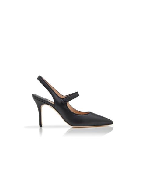 Black Nappa Leather Pointed Toe Slingback Pumps