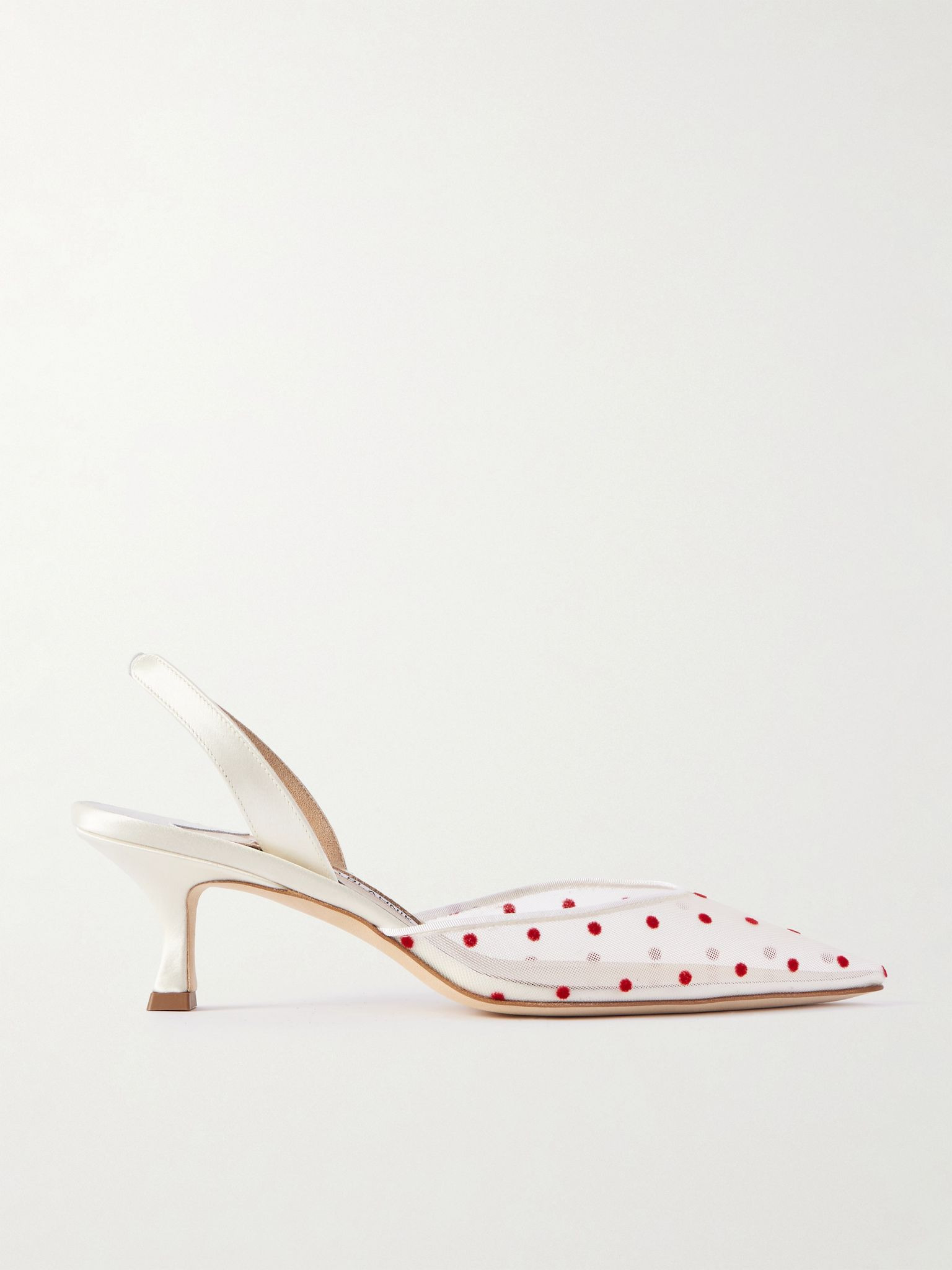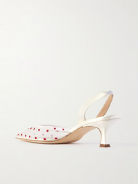 Carolyne 50 polka-dot flocked mesh and satin slingback pumps White