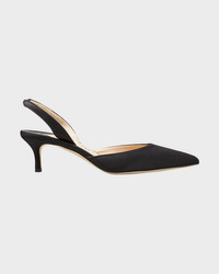 Carolyne Satin Low-Heel Slingback Pumps, Black