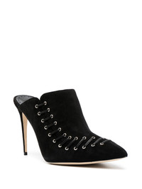 Dobre 105mm suede mules Highlights - Black - Calf suede/calf leather - Faux lace-up design - Metal eyelet detailing - Pointed toe - Branded footbed - 105mm high heel Composition Sole: Calf Leather 100% Outer: Calf Suede 100% Lining: Calf Leather 100% SIZE & FIT Measurement HEEL 4.1 in(10.5 cm)