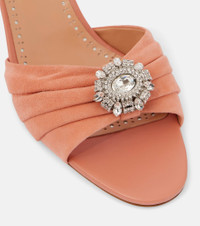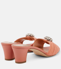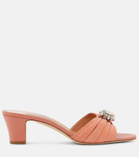 These mules from Manolo Blahnik feature pleated suede uppers with leather soles, complemented by almond peep toes and block heels. The design is completed with glamorous crystal accents that catch the light. Product Details - Upper: leather (suede) - Lining: leather - Sole: leather insole and sole - Toe shape: almond open toe - Handmade in Italy - Includes: shoe box, dust bags - Designer color name: 8601 Mcor - Item color: pink - Hardware color: silver - Item number: P01019549 Size & Fit - True to size - For narrow feet, we recommend trying a half size smaller - European sizes - 5cm-2" heel (size EU 38)