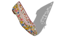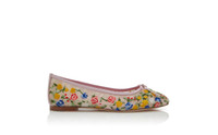 Multicoloured mesh round toe ballerina flats featuring floral embroidered design, pink grosgrain edging and flat stacked heel. Upper: 100% mesh. Sole: 100% calf leather. Lining: 100% kid leather. Heel measures 10 mm. Italian sizing. Made in Italy. Product ID: 125-2884-0001