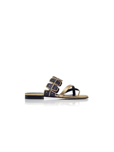 Gold and Black Nappa Leather Flat Sandals
