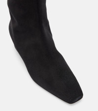 The Gore over-the-knee boots from Manolo Blahnik are dangerously stylish. Handmade in Italy from supple suede, the pair rests on comfortable 30mm block heels and are finished with pointed toes. Product Details - Upper: leather (suede) - Lining: leather - Sole: leather insole and sole - Toe shape: pointed toe - Handmade in Italy - Includes: shoe box - Designer color name: 0015 Blck - Item color: black - Item number: P01072657 Size & Fit - True to size - European sizes - 3,5cm-1.5" heel (size EU 38) - 55cm-21.5" shaft height (size EU 38) - 41cm-16" shaft width (size EU 38) - shaft width measured on largest part of boot