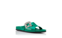 Green Satin Jewel Buckle Flat Mules