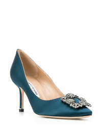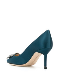 Hangisi pumps Manolo Blahnik needs no introduction. A label now synonymous with women's luxury shoes, the designer continues to design alone, looking to the past to sculpt the future with dynamic silhouettes for the modern women, as seen with these blue satin Hangisi pumps. Featuring a pointed toe, a leather lining, a mid high stiletto heel and a Swarovski crystal buckle. Made in Italy Composition Lining: Calf Leather 100% Sole: Calf Leather 100% Outer: Satin 100%
