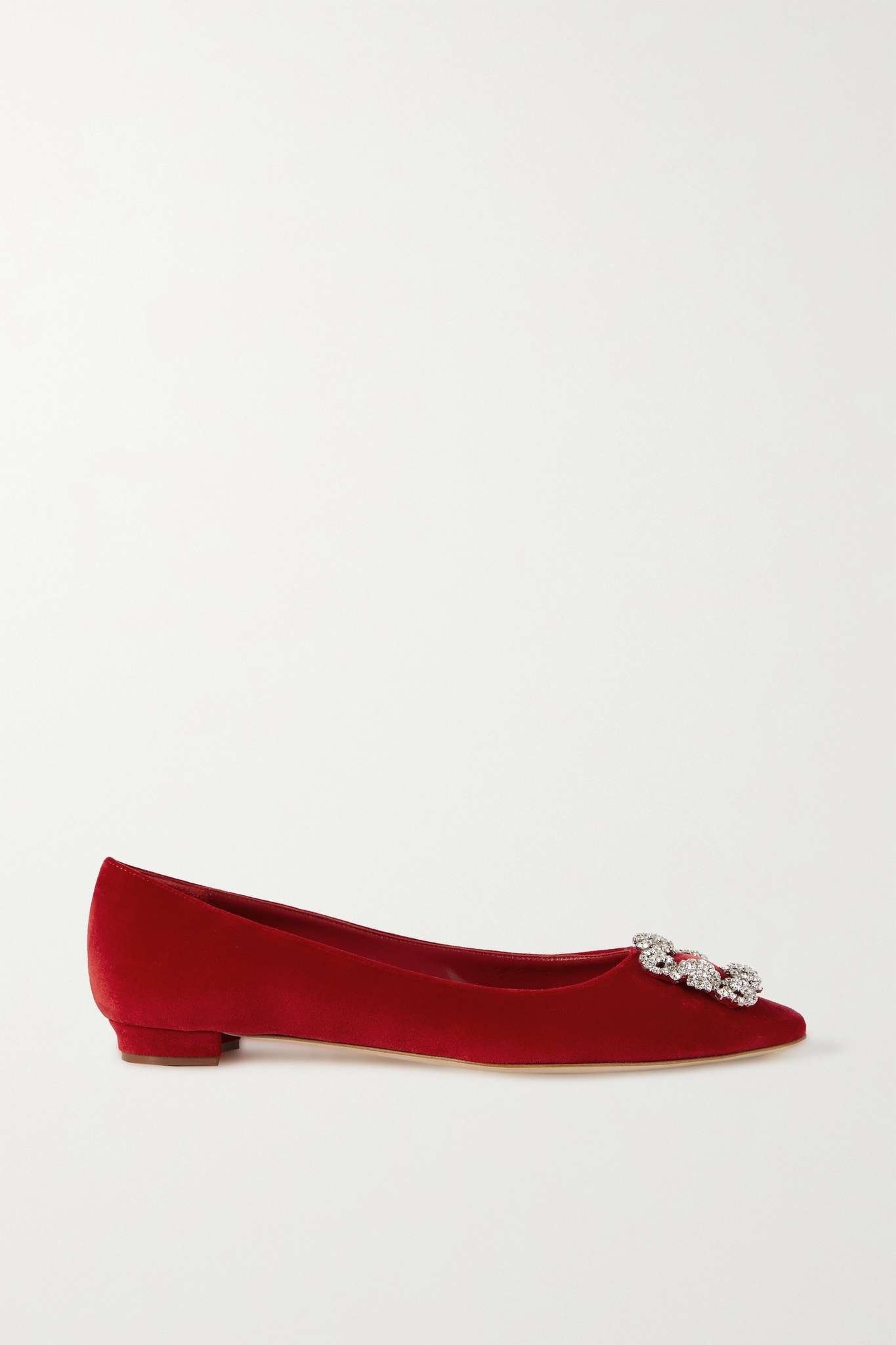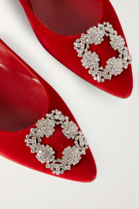 EDITORS'NOTES There's a pair of Manolo Blahnik's shoes for every occasion - the beauty is that you decide when to wear them. These velvet version of the iconic 'Hangisi' point-toe flats is topped with the signature crystal-embellished buckle. They're lined and soled with leather for durability. SIZE & FIT - Fits true to size, take your normal size - Italian sizing DETAILS & CARE - Heel measures approximately 10mm/ 0.5 inches - Burgundy velvet - Slip on
