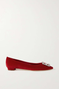 Hangisi crystal-embellished velvet point-toe flats