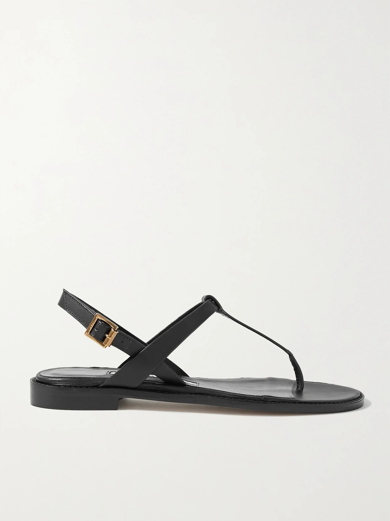 Manolo Blahnik's 'Hata' sandals are as versatile and timeless as they come. Set on slight heels, they've been made in Italy from supple black leather and have a flattering T-strap shape. Adjust the gold buckles for the perfect fit.