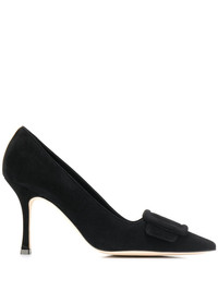 heeled suede pumps Black heeled suede pumps from Manolo Blahnik featuring a brand embossed insole, a pointed toe, a front buckle fastening and a mid high stiletto heel. Made in Italy Composition Outer: Calf Leather 100% Lining: Calf Leather 100% Sole: Calf Leather 100%