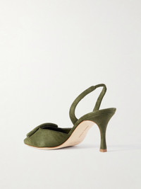 Manolo Blahnik's 'Maysli' pumps are a slingback interpretation of the label's 'Maysale' style, which first debuted in 1991. Made in Italy from green suede, they have slender 70mm heels and pointed toes topped with signature buckles. Wear yours with everything from formal dresses to tailoring.