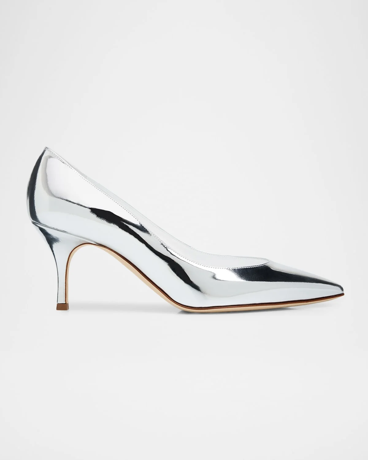 Manolo Blahnik "Kietta" metallic leather pumps 2.75 in / 70 mm stiletto heel Pointed toe Slipon style Leather outsole Lining: Leather Made in Italy