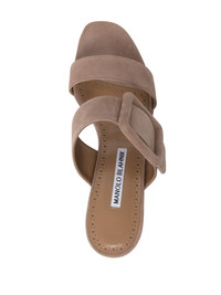 large-buckle sandals leather large-buckle sandals from MANOLO BLAHNIK featuring blush beige, branded insole, suede, decorative buckle detail, open toe and low block heel. Made in Italy Composition Leather 100% SIZE & FIT Measurement HEEL 2.36 in(6 cm)