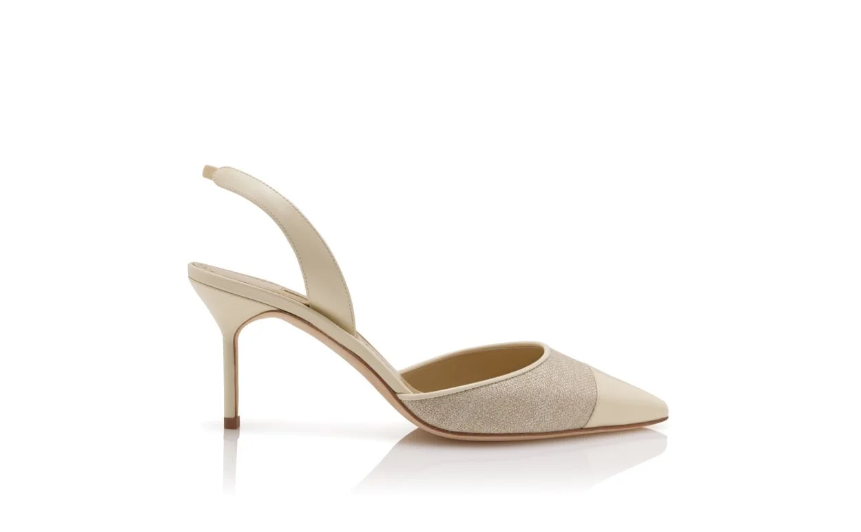 Light beige linen almond toe pumps featuring cream patent leather edging, toe cap and elasticated slingback design. Finished with a stiletto mid heel. Upper:50% linen, 50% patent calf.Sole:100% calf leather.Lining:100% kid leather.Heel measures:70 mm.Italian sizing. Made in Italy. Product ID: 126-3090-0001