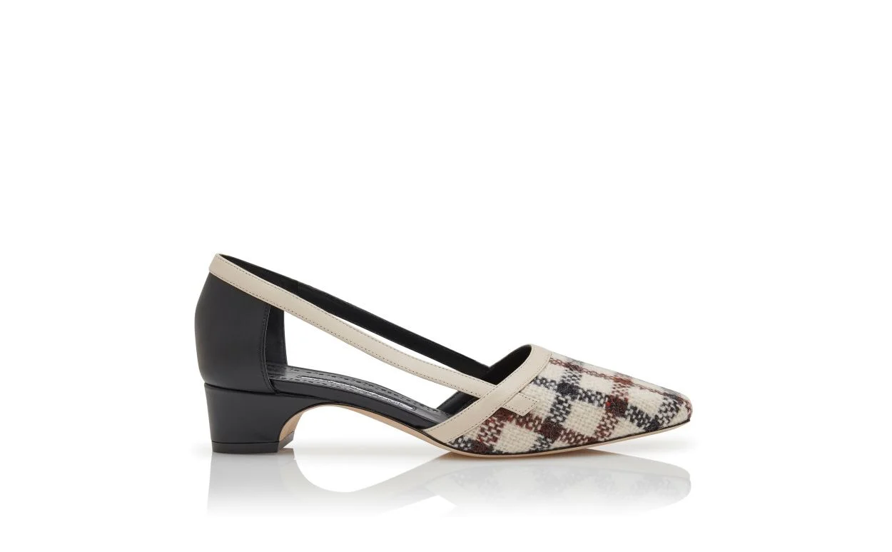 Light Beige Wool Tartan Pumps