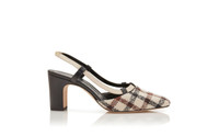 Light Beige Wool Tartan Slingback Pumps