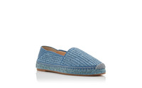 Light blue raffia round toe espadrilles featuring nappa leather edging and counter, slip-on design and platform straw detailing with flat rubber sole. Upper: 95% raffia, 5% lamb leather. Sole: 100% rubber. Lining: 100% kid leather. Heel measures 10 mm. Italian sizing. Made in Italy. Product ID: 224-1715-0004