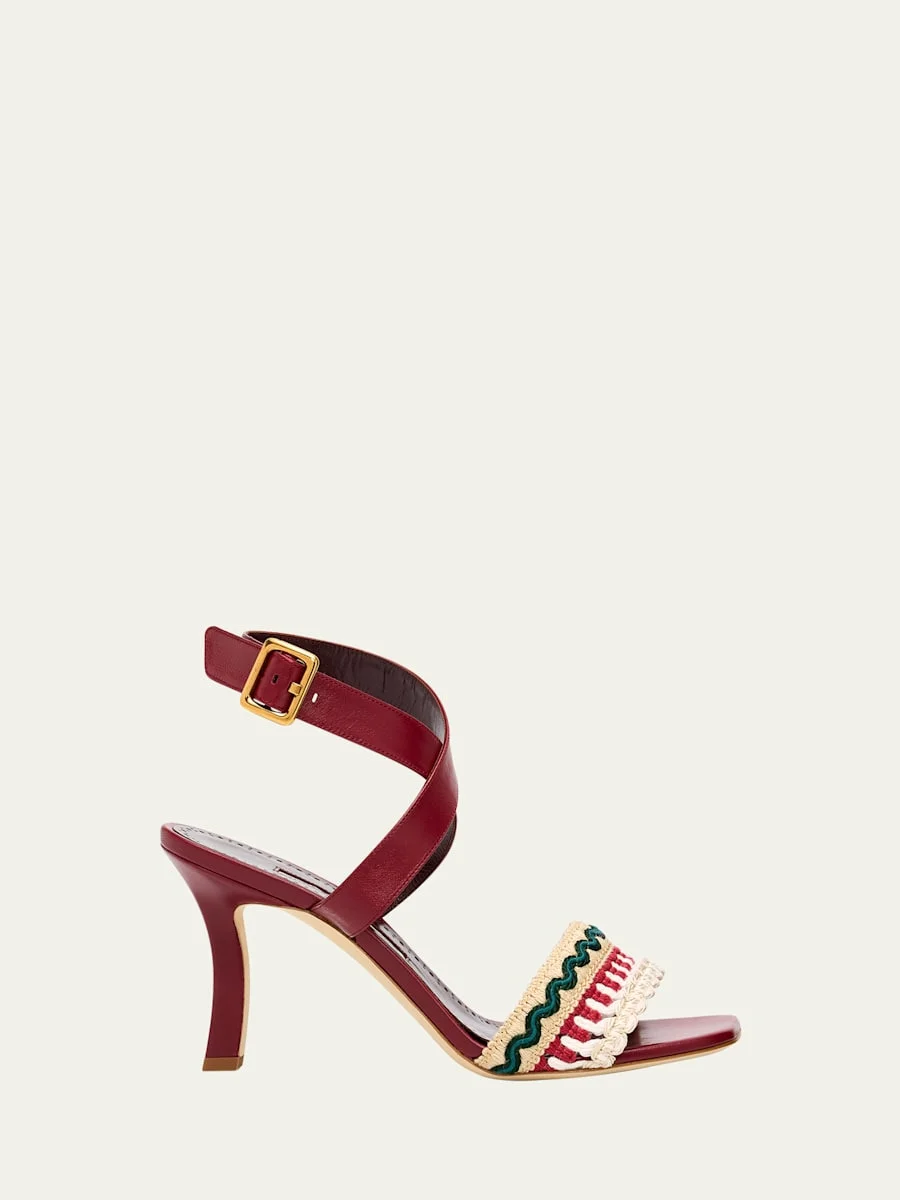 90mm Mabeco Embroidered Crochet Leather Sandals