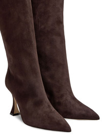 90mm Miralonepla pointed boots Highlights - Dark brown - Pointed toe - Pull on style - Suede texture - Block heel Made in Italy Composition Outer: Kid Suede 100% Lining: Kid Leather 100% Sole: Calf Leather 100% SIZE & FIT Measurement HEEL 3.54 in(9 cm)