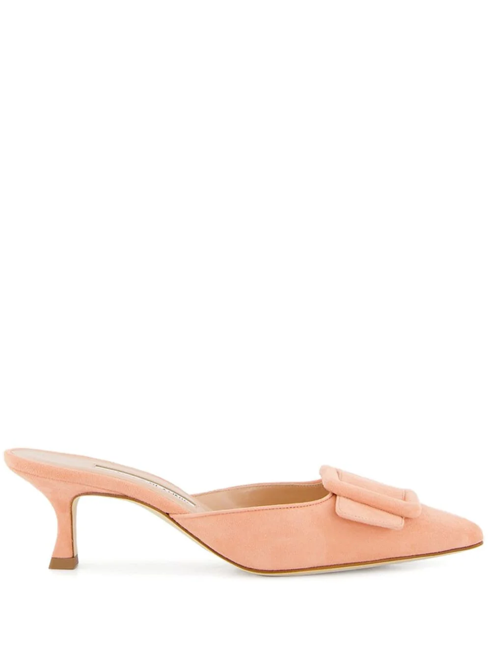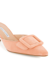 Maysale buckle-embellished pointed-toe mules Highlights - Light orange - Suede - Kitten heel - Pointed toe - Buckle detail - Slip-on style Made in Italy Composition Lining: Fabric 100% Sole: Rubber 100% Outer: Calf Leather 100%