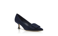 Navy Blue Suede Buckle Detail Pumps