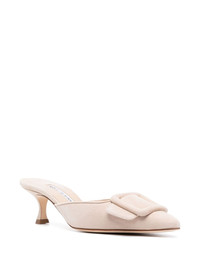 Maysale 50mm suede pumps Manolo Blahnik's Maysale pumps are easily recognisable thanks to the oversized buckle that graces the front. A minimalist take on the classic silhouette, this pair is crafted from neutral suede with a point toe and a mid stiletto heel. Highlights - Sand beige - Calf suede - Decorative buckle detail - Pointed toe - Slip-on style - Branded leather insole - Stiletto heel Made in Italy Composition Suede 100% SIZE & FIT Measurement HEEL 1.96 in(5 cm)