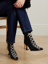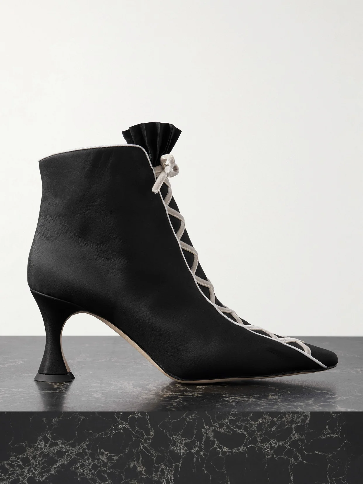 Nolhac 70 Ruffled Velvet-trimmed Silk Ankle Boots