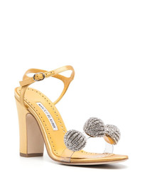 Ostria 90mm star-embellished sandals amber yellow calf leather satin finish glass crystal embellishment buckle-fastening ankle strap branded insole high heel Made in Italy Composition PVC 100% SIZE & FIT Measurement HEEL 4.13 in(10.5 cm) Sole height 0.39 in(1 cm)