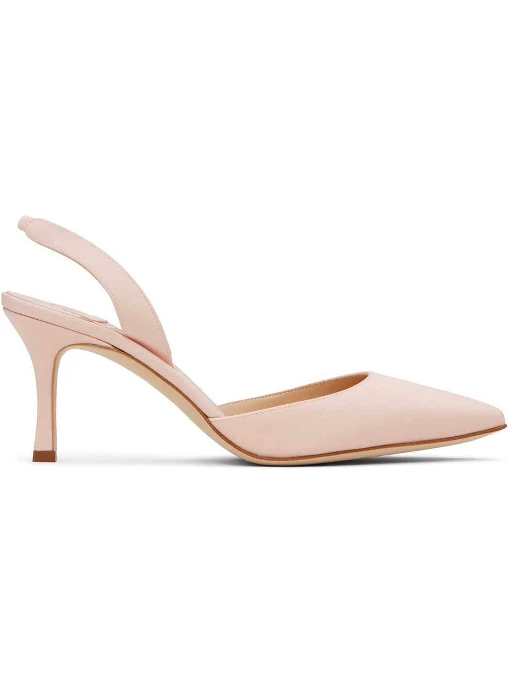 Handcrafted crepe de Chine heels. · Pointed toe · Partially elasticized slingback strap · Covered stiletto heel with rubber injection · Suede sole · Heel: H3" Supplier color: Light pink Upper: textile. Sole: leather, rubber. Made in Italy 252140F122017
