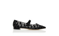 Black Mesh Polka Dot Mary Jane Flat Pumps