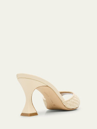 Manolo Blahnik "Jadara" mules in woven raffia 2.75 in / 70 mm architectural heel Open toe Slide style Leather outsole Lining: Goat leather Made in Italy Online Inquiries: BGS21_X6WEK| Store Inquiries: #5022555