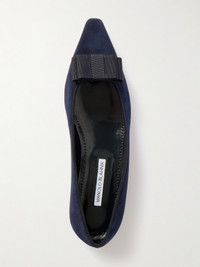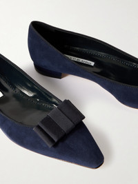 Manolo Blahnik's 'Reador' flats are classically elegant. Crafted in Italy from velvety suede, they have slight heels and sleek pointed toes topped with tonal grosgrain bows. The all-navy colorway means you can wear them with absolutely anything.