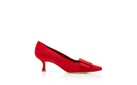 Red Suede Buckle Detail Pumps
