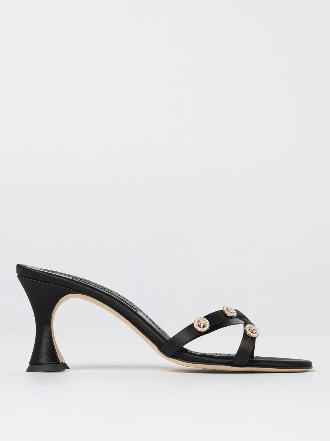 DESCRIPTION - Details: With rhinestones - Lining: With logo - Model: Slip on - Toe: Round - Heel: Open, undefined - Sole: Leather - Materials: undefined - Pattern: undefined DETAILS AND CARE Composition 100% FABRIC (72% VI 28% SE) SIZE AND FIT Sizes Heel: 7 cm Designer code: 225-1869-0002 0015 Giglio Code: 432555 Designer: Manolo Blahnik Collection: Manolo Blahnik Woman Category: Shoes Manolo Blahnik