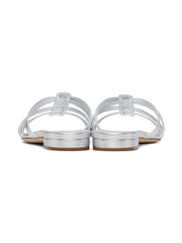 Handcrafted nappa lambskin flat sandals in silver tone. · Open toe · Crisscrossing straps at vamp · Perforated detailing at grained leather footbed · Covered block heel with rubber injection · Suede sole Supplier color: Silv Upper: lambskin. Sole: calfskin. Made in Italy 241140F124010