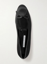 Manolo Blahnik's ballet flats have been made in Italy from smooth satin traced with leather. Topped with dainty bows, they have rounded toes and slight heels for subtle lift. Size & Fit - Fits true to size, take your normal size - Those with narrow feet may wish to take the next size down - Italian sizing Details & Care - Heel measures approximately 10mm/ 0.5 inches - Black satin and leather - Slip on