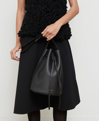 Fits: iPad and smaller Taller and slimmer than our original Bucket Bag, the Champagne Bucket combines functional design with effortless style. Intentional details—an adjustable buckle strap, convenient pull drawstring, structured side seams, and a circular, sturdy base—intersect in this streamlined bucket as you carry your items—or yes, even a bottle of bubbly—with ease. Details Depth: 7.5in / 19cm Width: 7.5 in / 19cm Height: 11.2in / 28.5cm Strap Drop: Max 15.7in / 40cm - Min 12 in / 30.5cm Composition: Self: 100% Italian Pebbled Leather Lining: 100% Italian Calf Suede Leather Made in Italy Materials Our Italian Pebbled Leather is an ultra soft, textured leather with a soft hand feel. The tumbling process used on this leather creates a more durable material that is less prone to scratching and wear.