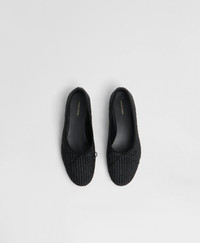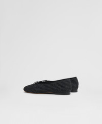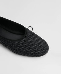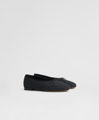 Our Dream Ballerina features a signature knotted bow, grosgrain trim, and low stacked heel. Crafted from soft raffia, it molds comfortably to your foot. Easily adjust the fit of your flat by gently pulling on the bow string for a more snug feel. Details Heel Height: 0.40 in / 10 mm Composition: Italian Woven Raffia Lining: 100% Italian Lambskin Leather Made in Portugal Sizing Please reference our Size Guide to find your size. Materials Our Raffia fabrication is woven in Tuscany in a century old mill. Made from a blend of polyamide and cotton, our Raffia is naturally soft and durable. Avoid abrasive surfaces and spot clean with a damp cloth.