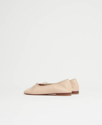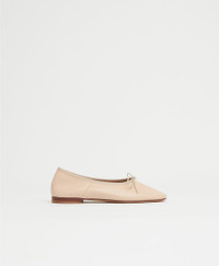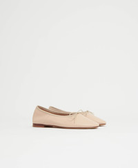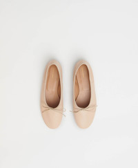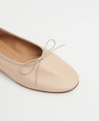 Our updated Dream Ballerina flat is produced in Italy with added insole padding for extra comfort. Crafted from Italian lambskin leather, the ballerina features a signature knotted bow, grosgrain trim, and a low stacked heel. Easily adjust the fit of your flat by gently pulling on the bow string for a more snug feel. Additional color options here . Details Heel Height: 0.40 in / 10 mm Composition: Self/Lining: 100% Italian Lambskin Leather Made in Italy Sizing Please reference our Size Guide to find your size. Materials Our Italian lambskin is an ultra-smooth, buttery leather. Lambskin is recognized for both its soft texture and longevity. We recommend a leather conditioner for hydration. Avoid exposure to abrasive surfaces and store the item in its dust bag.