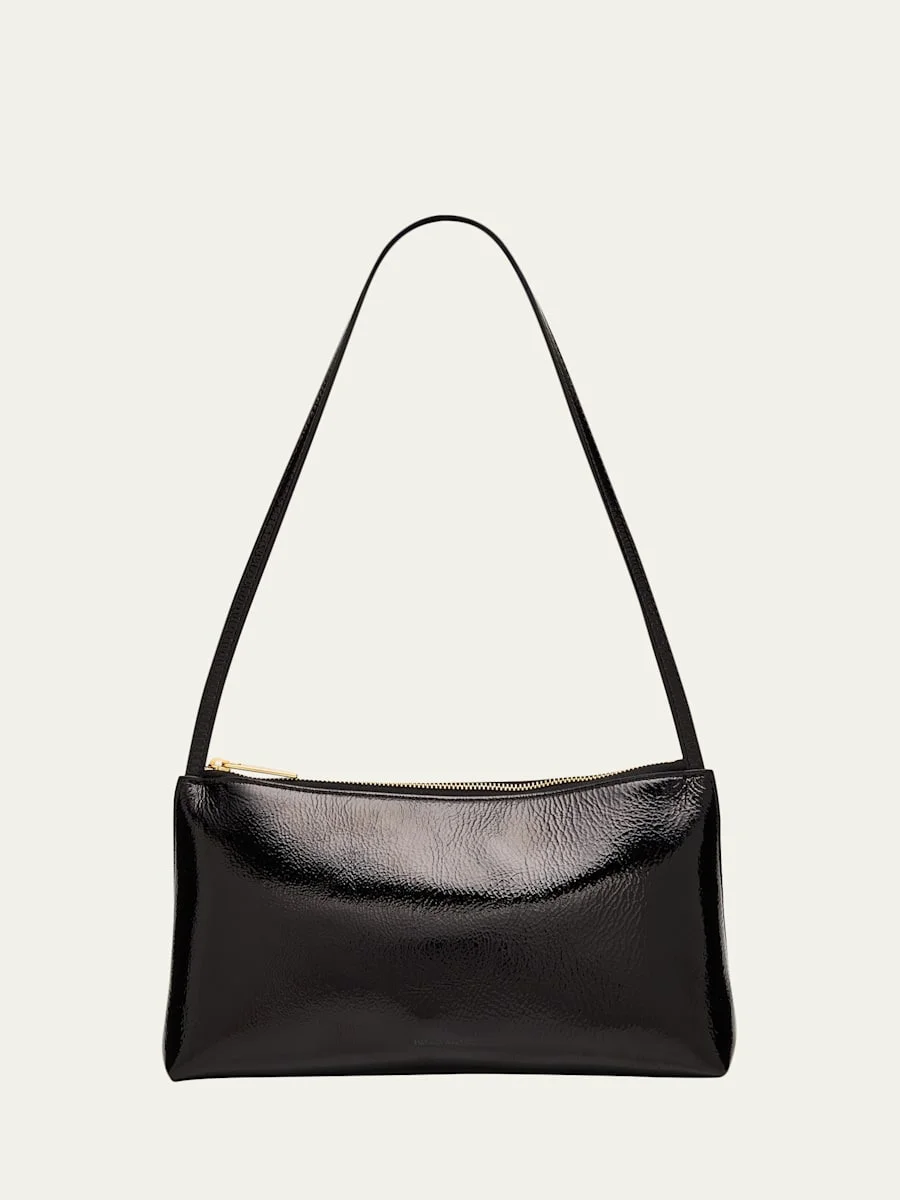 This Mansur Gavriel "Gaia" shoulder bag is sleek and minimalistic, designed in premium naplak leather Flat shoulder straps, 10.2" drop Zip top closure Approx. 5.5"H x 9.5"W x 1.5"D Made in Italy