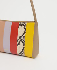 Details Width: 9.5 in / 24 cm Height: 5.5 in / 14 cm Depth: 1.5 in / 4 cm Strap drop: 10.2 in / 26 cm Weight: 6 oz Composition: 100% Italian Lambskin Leather / 100% Italian Stamped Cow Leather Lining: 100% Italian Lambskin Leather Made in Italy Materials Crafted in Italy from ultra-smooth lambskin and fine Italian cow leather, balancing a buttery-soft hand feel with a refined, luxurious finish. The lambskin offers a delicate touch that becomes even softer and smoother over time, while the cow leather is artfully stamped and cut to evoke the texture of genuine snakeskin, creating our distinctive printed python effect. We recommend cleaning with a damp cloth and a leather conditioner for hydration. Avoid abrasive surfaces and liquids. While not in use, store in a dust bag for proper ventilation.