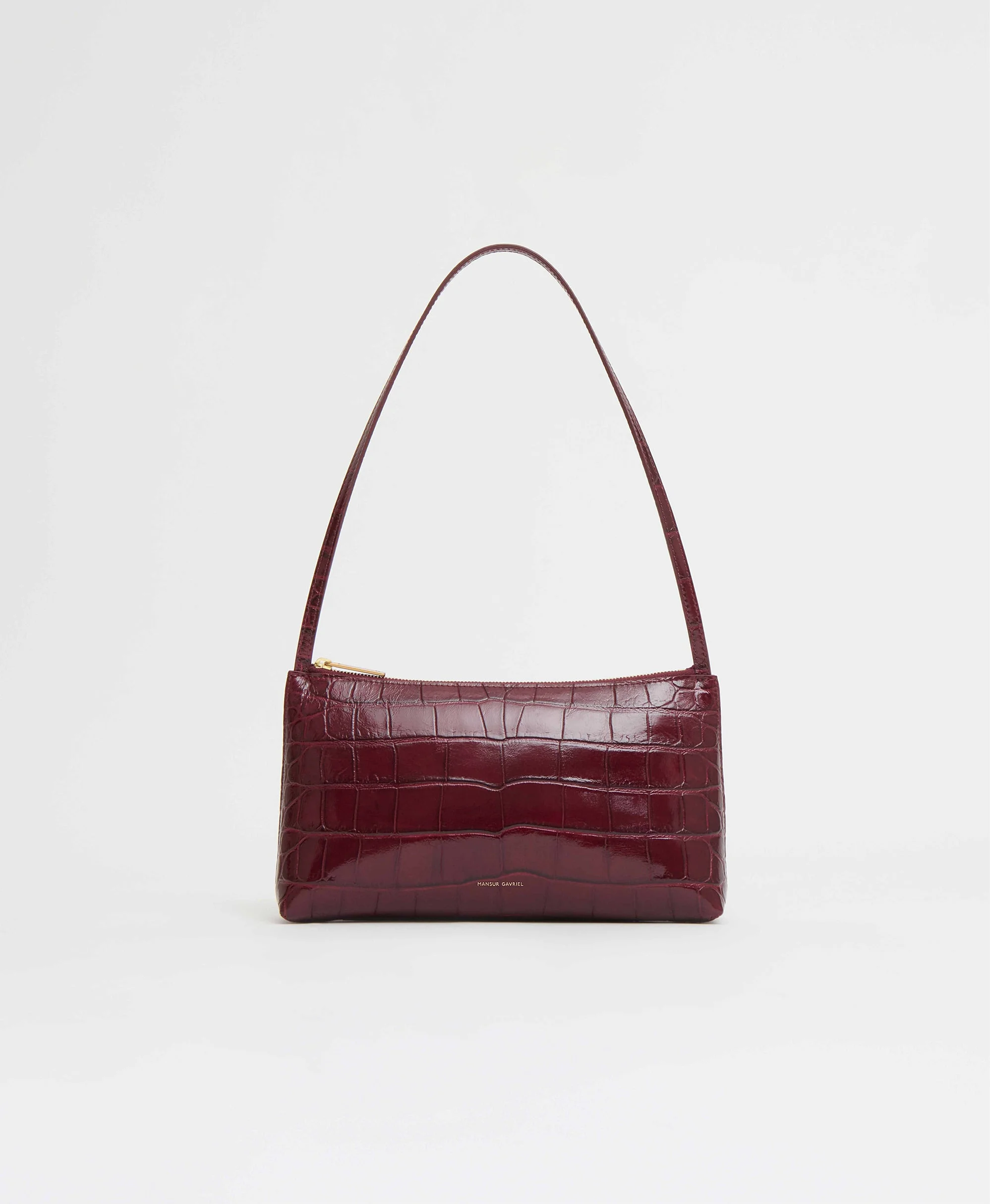 Slender and simply tucked under the arm, the Gaia Bag was designed for your essentials. Crafted from durable stamped Italian leather , with a thin strap and zipper closure for a slim carry. Details Width: 9.5 in / 24 cm Height: 5.5 in / 14 cm Depth: 1.5 in / 4 cm Strap drop: 10.2 in / 26 cm Weight: 6 oz Composition: 100% Italian Stamped Cow Leather Lining: 100% Italian Lambskin Leather Made in Italy Materials An Italian Calf leather base that is then embossed with a metal plate to replicate the natural pattern of a Crocodile. The leather is finished with a slight sheen. Known to be more durable and great for everyday use. Wipe clean with a damp clean cloth. While not in use, lightly stuff the bag to keep its shape and store in the dust bag for proper ventilation.