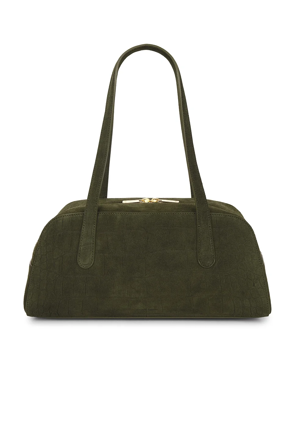 - Croc embossed suede exterior with leather lining - Dual top zipper closure - One main compartment - Integrated shoulder straps - Measures approx 13.5" W x 6" H x 6" D Shoulder strap with a 10" drop - Revolve Style No. MANR-WY83 - Manufacturer Style No. WF25H183SC