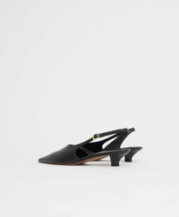 Our Anna Slingback is crafted in Italy from supple lambskin, calfskin leather or rich suede, featuring a pointed toe, a one-inch heel, and an architectural strap that gently cradles the foot for all-day comfort and ease. Details Heel height: 1.1 in / 3 cm Toe vamp: 4.3 in / 11 cm Composition: 100% Italian Lambskin Leather Made in Italy Materials Our Italian lambskin is an ultra-smooth, buttery leather. Lambskin is recognized for both its soft texture and longevity. We recommend a leather conditioner for hydration. Avoid exposure to abrasive surfaces and store the item in its dust bag.
