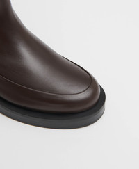 Made from premium Italian calf leather, this modern lug boot features considered detailing. The minimalist design features a reinforced toe, durable rubber sole, and zippered back closure. If you prefer a tighter fit, we recommend sizing down a half size. Details Heel Height: 1.6 in / 4 cm Shaft Height: 7 in / 17.5 cm Composition: Self/Lining: 100% Italian Smooth Calf Leather Made in Portugal Sizing If you prefer a tighter fit, we recommend sizing down a half size. Materials Our Italian Calf Leather is a smooth, refined leather with a polished finishing. Although recognized for its longevity, we recommend occasionally treating this leather with a leather conditioner, which will help keep it hydrated.