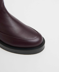 A modern classic boot crafted from premium Italian leather. It molds to your foot, offering a custom fit. The striated short heel adds a subtle lift, making it versatile for any occasion. Details Heel height: 0.78 in/ 20 mm/ 2 cm Shaft Height: 7 in / 17.5 cm Composition: 100% Italian Lambskin Leather Made in Portugal Materials Our Italian lambskin is an ultra-smooth, buttery leather. Lambskin is recognized for both its soft texture and longevity. We recommend a leather conditioner for hydration. Avoid exposure to abrasive surfaces and store the item in its dust bag.