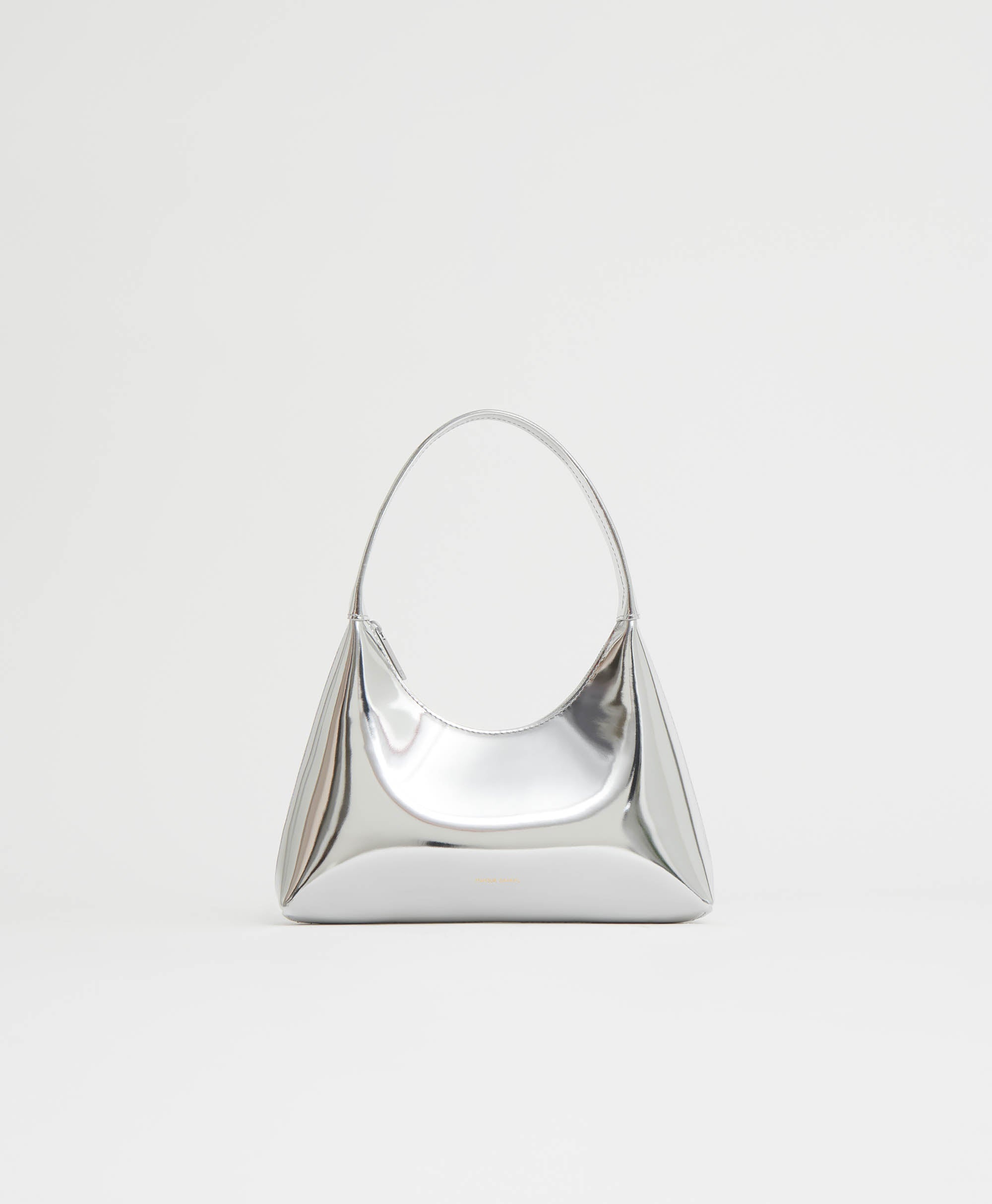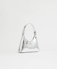 Now offered in metallic coated leather. Crafted in Italy, our Mini Candy Bag is defined by its graphic silhouette with a circular strap that allows for it to be worn over the shoulder or carried by hand. The mini sized style is finished with zip top closure and an interior pop of color. Details Width at Top: 7.08 in / 18cm Width at base: 9.5 in / 24cm Height: 4.7in / 12cm *from center zip to base Depth: Bottom: 2.2 in / 5.5cm , Top: 1.4 in / 3.5cm Handle Drop: 6.7in / 17cm Composition: 100% Italian Specchio Calf Leather Lining: Smooth Coating Made in Italy Materials Our Italian spechhio leather features a metallic coating, creating a mirror-like effect. This leather is treated with an anti-scratch coating, but avoid direct heat and abrasive surfaces. Wipe clean with damp cloth and dry. While not in use, store in a dust bag for safe keeping.
