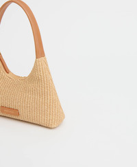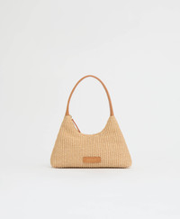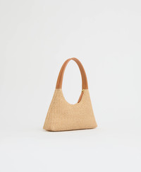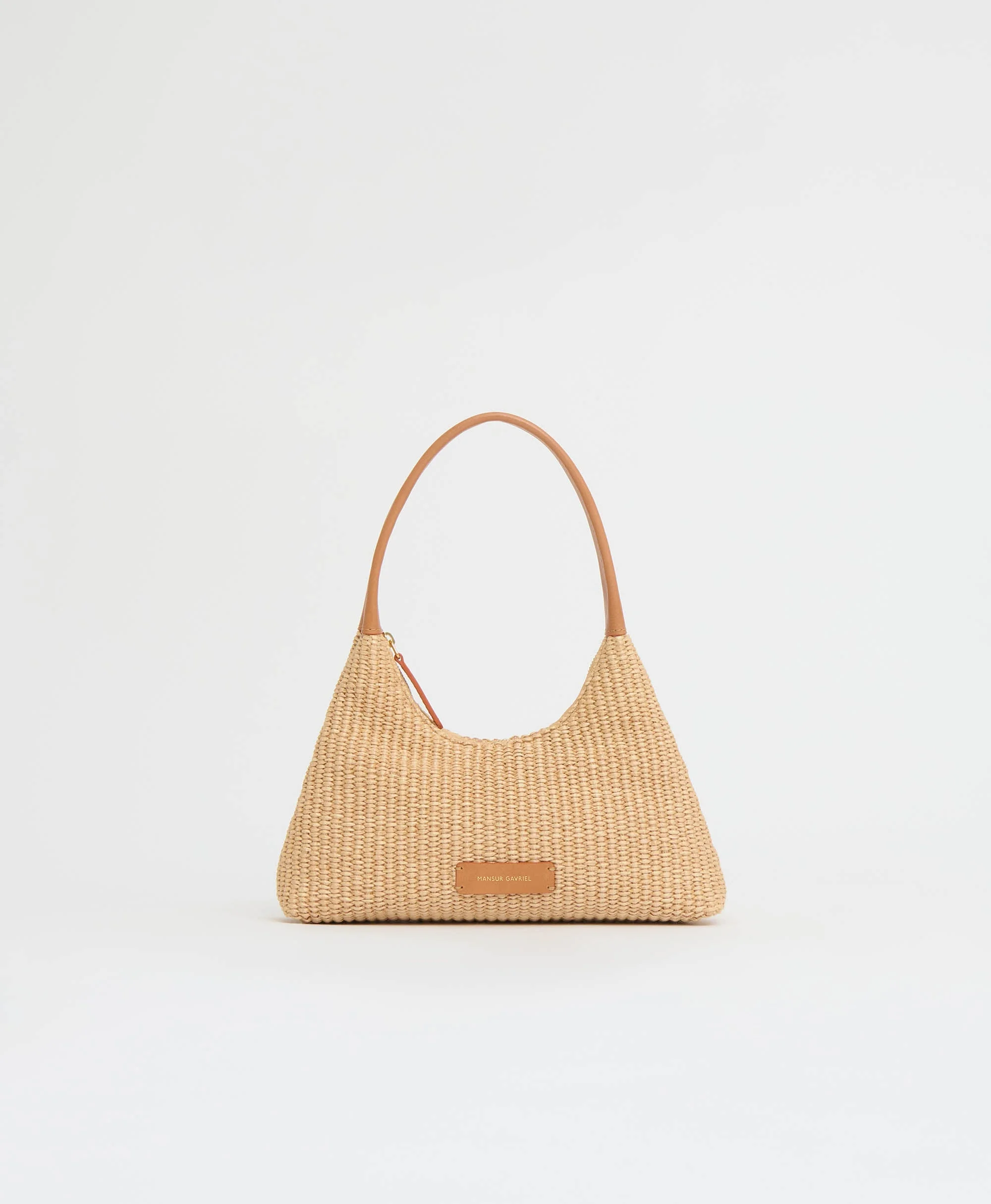 Crafted in Italy, our Mini Candy Bag is defined by its graphic silhouette with a circular strap that allows for it to be worn over the shoulder or carried by hand. The mini sized style is finished with zip top closure. Details Width at Top: 7.08 in / 18cm Width at base: 9.5 in / 24cm Height: 4.7in / 12cm *from center zip to base Depth: Bottom: 2.2 in / 5.5cm , Top: 1.4 in / 3.5cm Handle Drop: 6.7in / 17cm Composition: Italian Woven Raffia Lining: Italian Canvas Trim: 100% Italian Vegetable Tanned Leather Made in Italy Materials Our Raffia fabrication is woven in Tuscany in a century old mill. Made from a blend of polyamide and cotton, our Raffia is naturally soft and durable. Avoid abrasive surfaces and spot clean with a damp cloth.